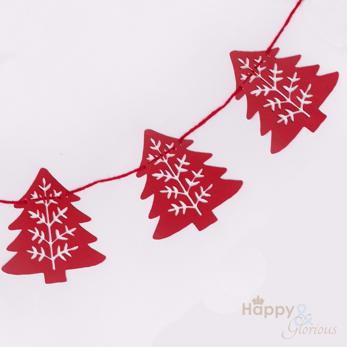 This pretty Nordic tree papercut bunting is designed and made by Happy & Glorious owner, Kate Tompsett. The Nordic tree bunting looks perfect against a mirror, a mantelpiece or on a staircase. Make your Christmas a little bit more jolly with this reuseable, recyclable, compostable party decor!
