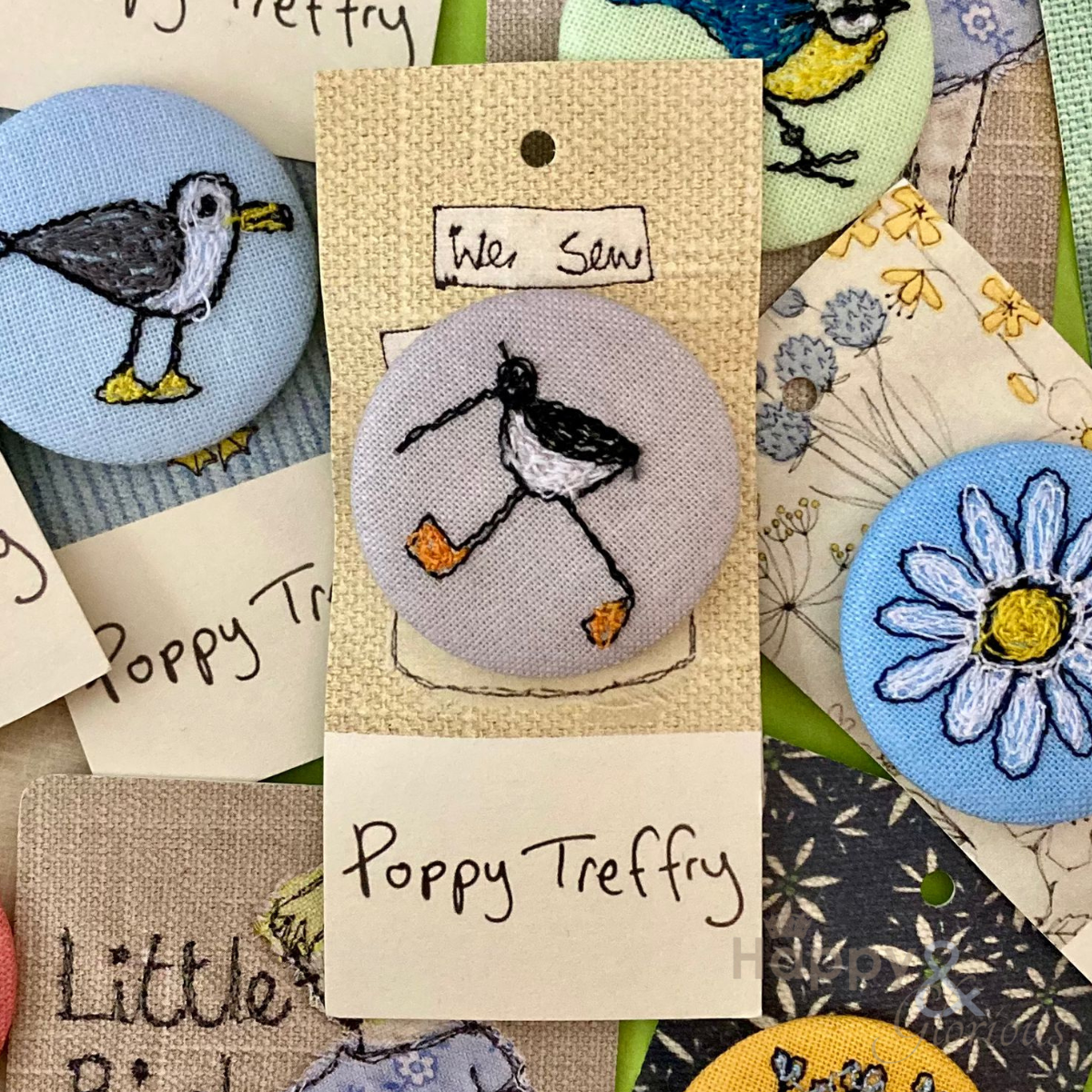 Each metal and fabric brooch comes presented on a pretty Poppy Treffry branded card. The pin badge measures 30mm wide.