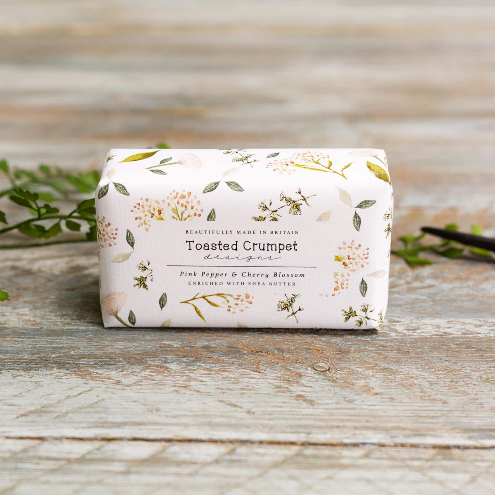 This pink pepper and cherry blossom soap is made in Surrey by Toasted Crumpet Designs. It is scented with rich violet, pink pepper and sweet cherry blended with aromatic spices. The soap is enriched with shea butter for a rich, luxurious lather.